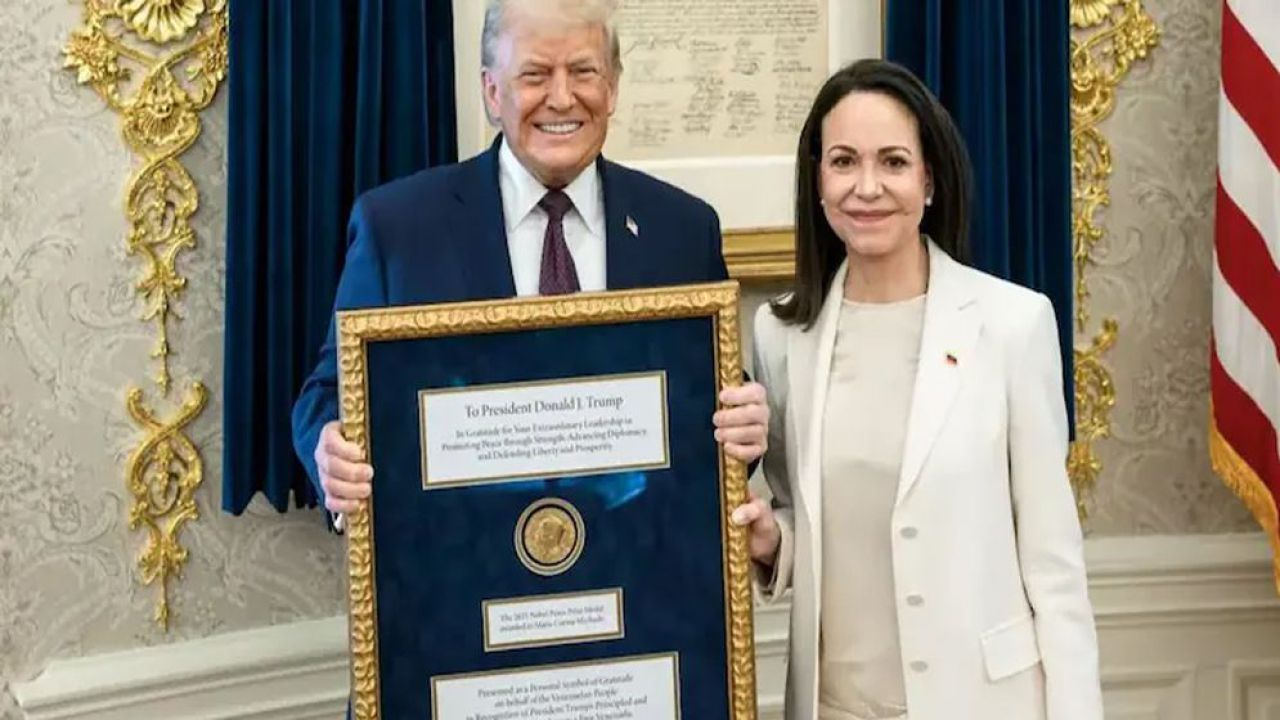 মাচাদো জানান, গত জানুয়ারিতে হোয়াইট হাউসে ডোনাল্ড ট্রাম্পের সঙ্গে সাক্ষাৎকালে তিনি এই সম্মাননা তার হাতে তুলে দেন। এর ঠিক দুই সপ্তাহ আগেই ট্রাম্পের নির্দেশে মার্কিন সেনাবাহিনী কারাকাসে অভিযান চালিয়ে তৎকালীন প্রেসিডেন্ট নিকোলাস মাদুরোকে আটক করে যুক্তরাষ্ট্রে নিয়ে যায়। মাদুরো বর্তমানে নিউইয়র্কে মাদক সংক্রান্ত অভিযোগে কারাবন্দি রয়েছেন।